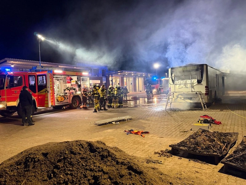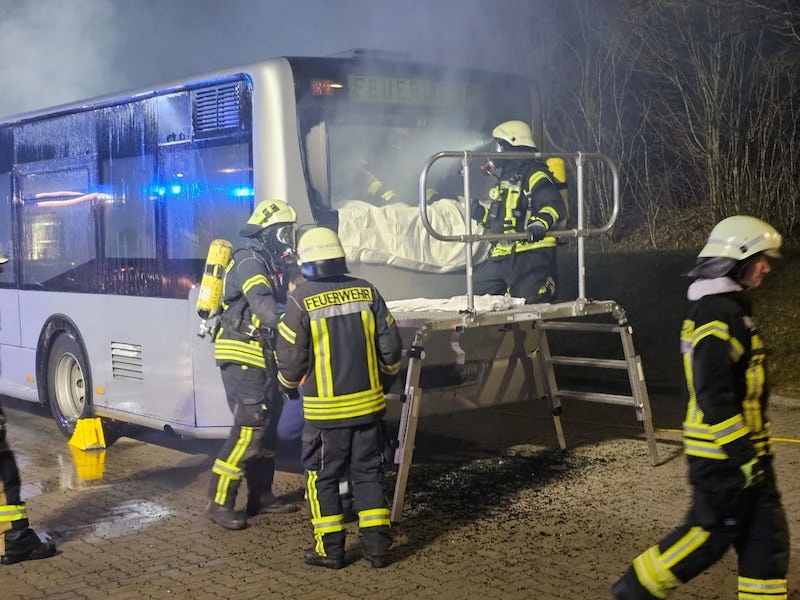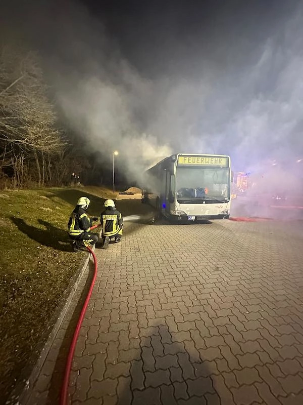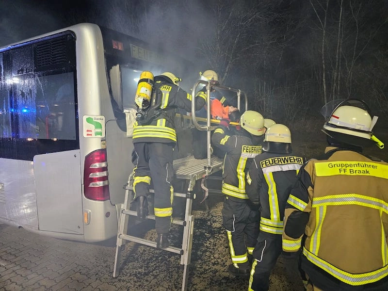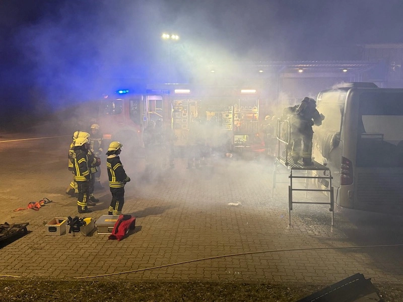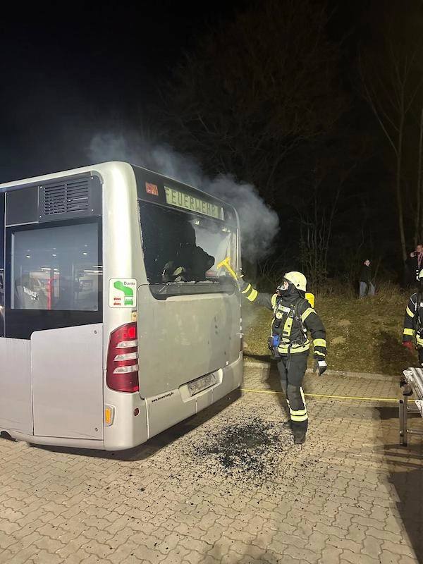 Vor Ort wurden die Abschnitte durch die Einsatzleitung eingeteilt: Vorrangig galt es, eine unbekannte Anzahl von Personen im Bus zu Retten. Hierfür wurde mit der LKW Rettungsühne der Zugang von der Rückseite des Busses gewählt. Zeitgleich erfolgte die Brandbekämpfung von Innen und Aussen.
